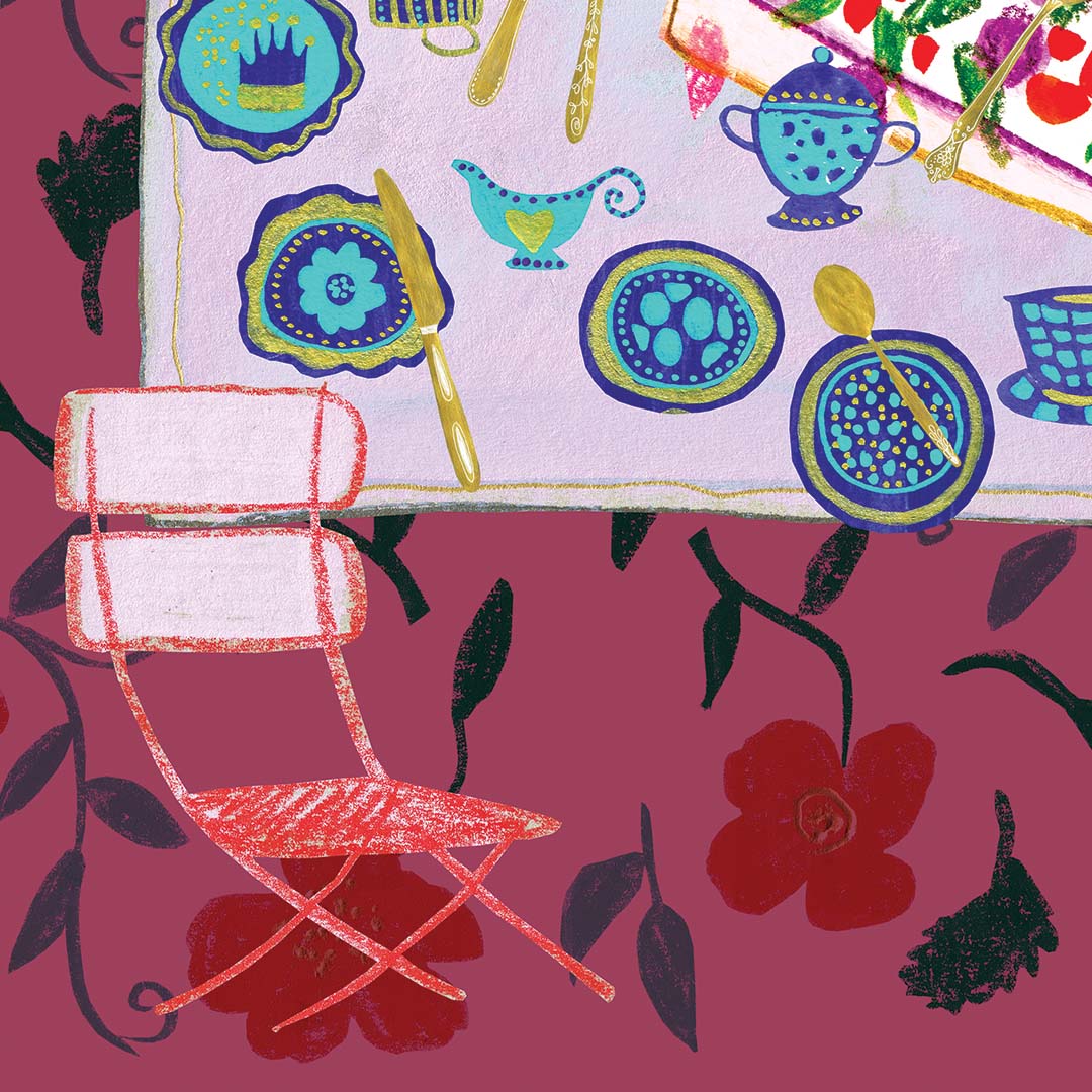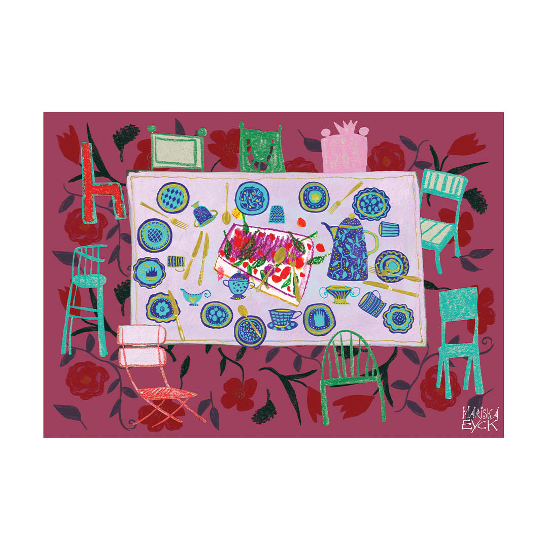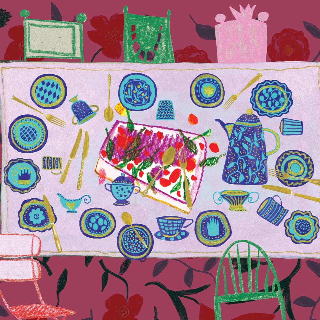 ‘Who do you invite at your table?’ is a digital rework of a drawing/painting in one of my sketchbooks. I used pen, crayon, gouache, aquarel, collage, markers (among others...)